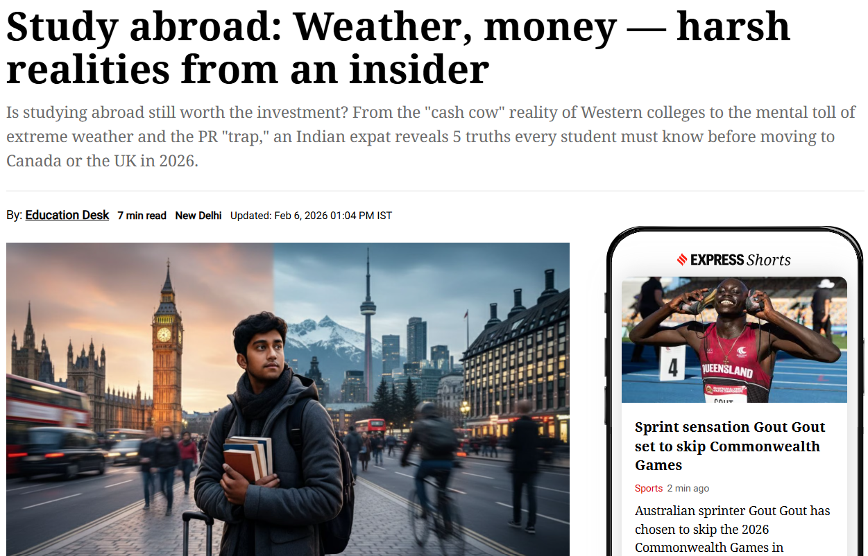 I wrote an article for The Indian Express, published in February 2026, outlining five factors international students from India should consider before deciding to pursue an overseas education.